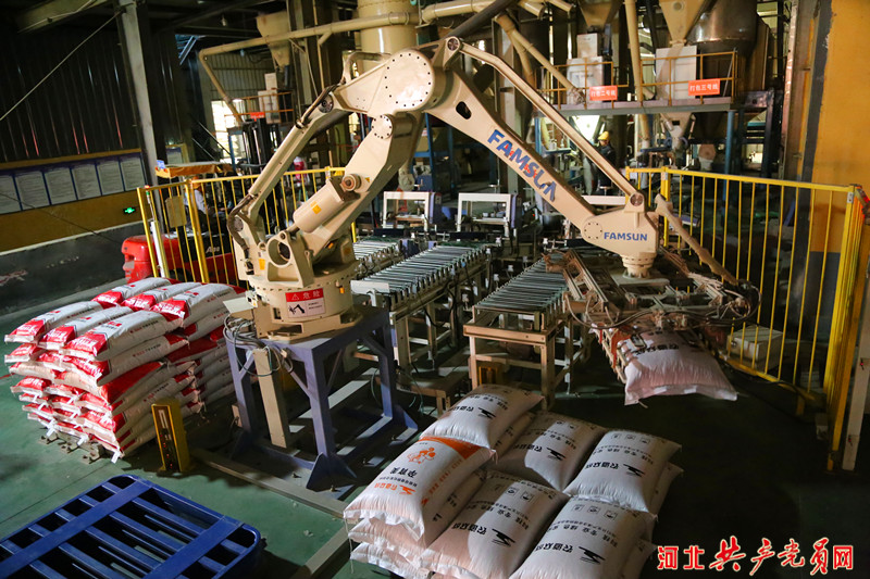 唐山(shān)農道衆成(cheng)飼料有(yǒu)限(xian)公(gōng)司引進(jin)的(de)日(ri)本(ben)川崎機(jī)器(qi)人(ren)正在(zai)分(fēn)揀碼垛。吳海民(mín) 攝