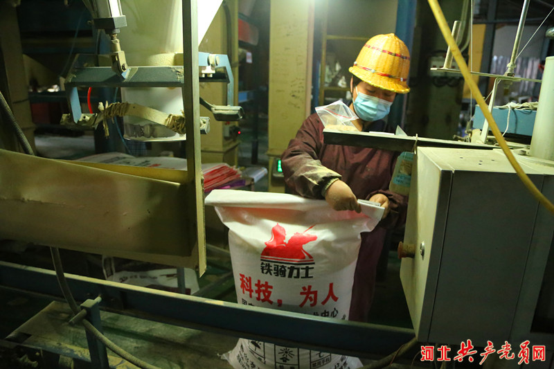 唐山(shān)農道衆成(cheng)飼料有(yǒu)限(xian)公(gōng)司的(de)工(gong)人(ren)正在(zai)接包口接包。吳海民(mín) 攝